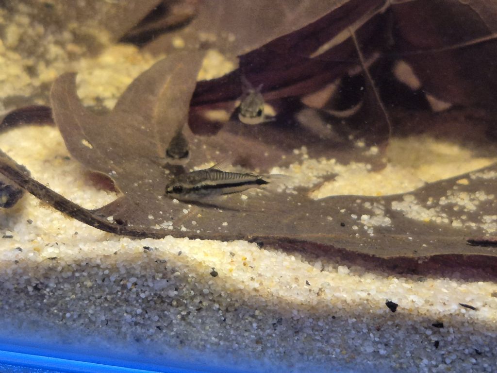Haftada bir yemleme yaptım, ancak camlarda oluşan yosunlara çok müdahale etmedim. Sadece ön camı temizledim; zamanla yan camlardaki ve içerideki yosunlar kendiliğinden kayboldu. Akvaryuma dışarıdan yalnızca bir kez, yedinci ayda yüzde 15 su değişimi yaptım. Bu süreçte evdeki kuruyan yaprakları ve catappa yapraklarını düzenli olarak eklemeye devam ettim.