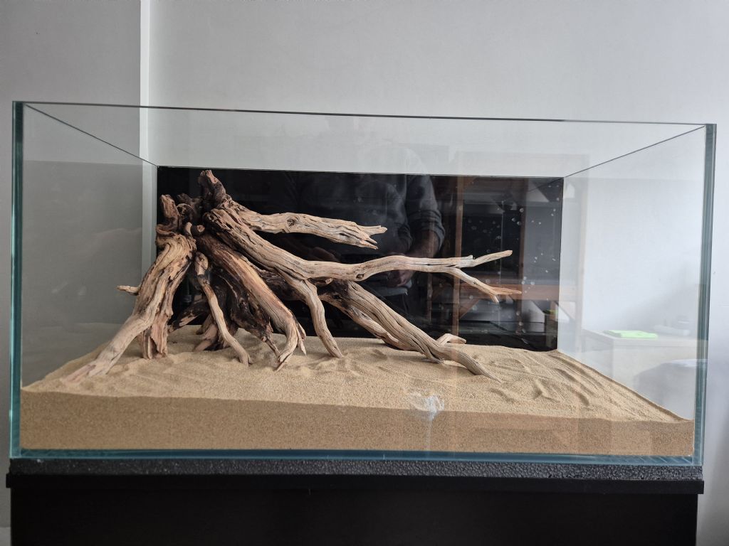 Her neyse tanka gelecek olursak, şöyle şöyleyim tasarım hiç bir zaman iddialı olduğum kısım değildir. Açıkçası gidip driftwoodlar tek tek seçene ve eve getirip tanka yerleştirene kadar ne yapacağımı da bilmiyordum. Ama oluşan görsel oldukça hoşuma gitti.