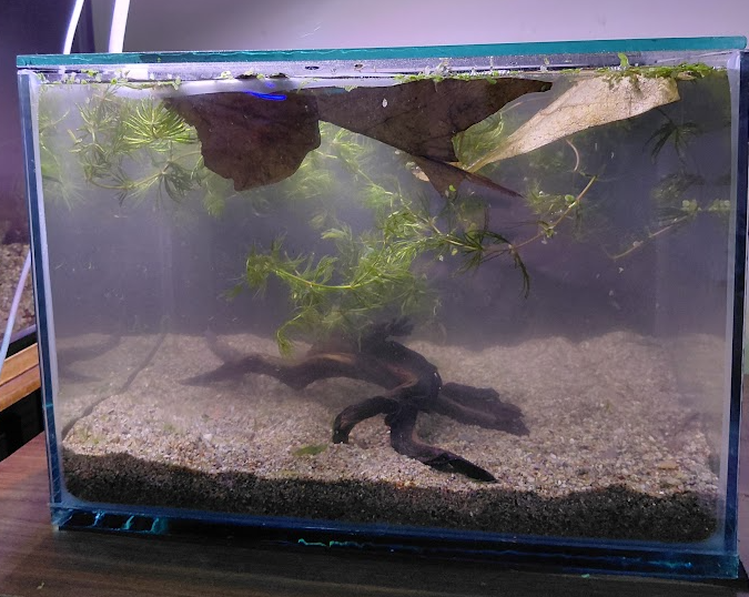Filtre, ısıtıcı, dekor, taş, CO₂vb. kullanmadım, kullanmayı da düşünmüyorum. Belki ilerleyen zamanda doğal görünümlü bir kök ve üzerine bitki olabilir. Evim her daim sıcak. Suyun sıcaklığını sürekli takip ediyorum, 24 - 26 ℃ aralığında. Evin sıcaklığı sabit olduğu için su sıcaklığı da değişmez sanırım.
