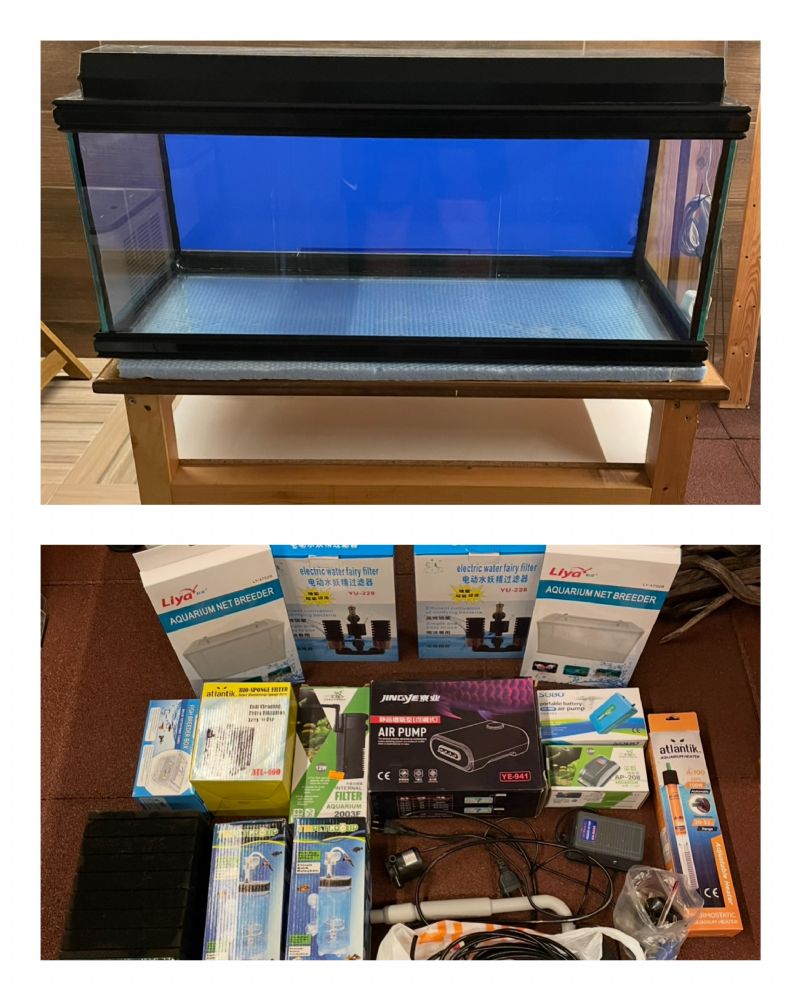 Satılan Malzeme(ler): 74.5cm x 29.5cm x 32cm ölçülerinde, 2 adet cam bölmesi olan, mavi arka planlı, florasanı sorunsuz çalışan Aksan Akvaryum yapımı akvaryum. Ayrıca el yapımı sehpası da fiyata dahildir. Yanında ayrıca 2 adet sıfır YU-228 motorlu pipo filtre, 4 adet hava motoru (Jingye 4 çıkışlı, Sobo, Shark, Venusaqua), 1 adet süngerli el yapımı filtre, 2 adet sıfır tül yavruluk, 2 adet sıfır filtreli kuluçka, 1 adet yavru yetiştirme kutusu, 1 adet 100W Atlantik Isıtıcı ve 1 torba hava hortumu, hava taşı ve vantuz verilecektir.