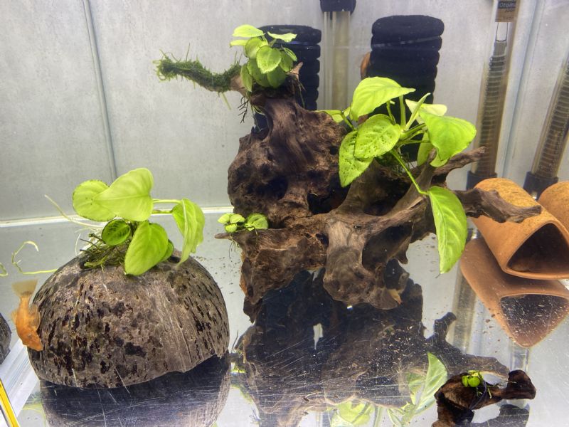Satılan Canlı: anubias ve Java Moss sarılmış magrow kök ve Hindistan cevizi kabuğuna tutturulmuş anubias