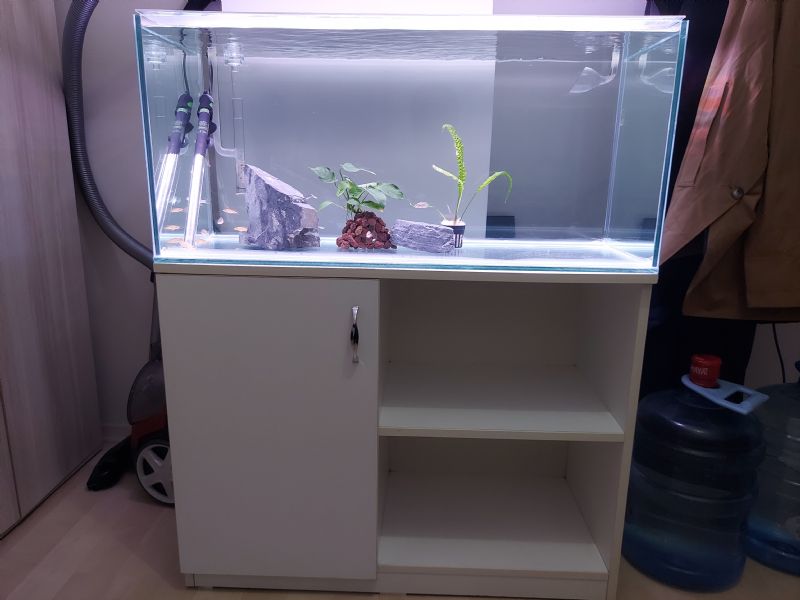 Diğer Ek Bilgiler: 10mm camdan üretilmiştir. Ön cam extra clear, bitki akvaryumu olarak üretildiği için üst kısmında kayıt/kuşak yoktur. Mobilyası beyaz MDF'dir. Mobilyada şişme veya deformasyon yoktur.